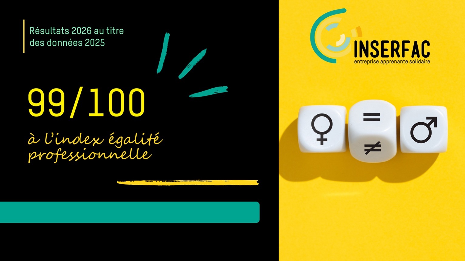 Comme chaque année, Inserfac publie son index égalité professionnelle et obtient 99 /100 aux indicateurs suivants :
